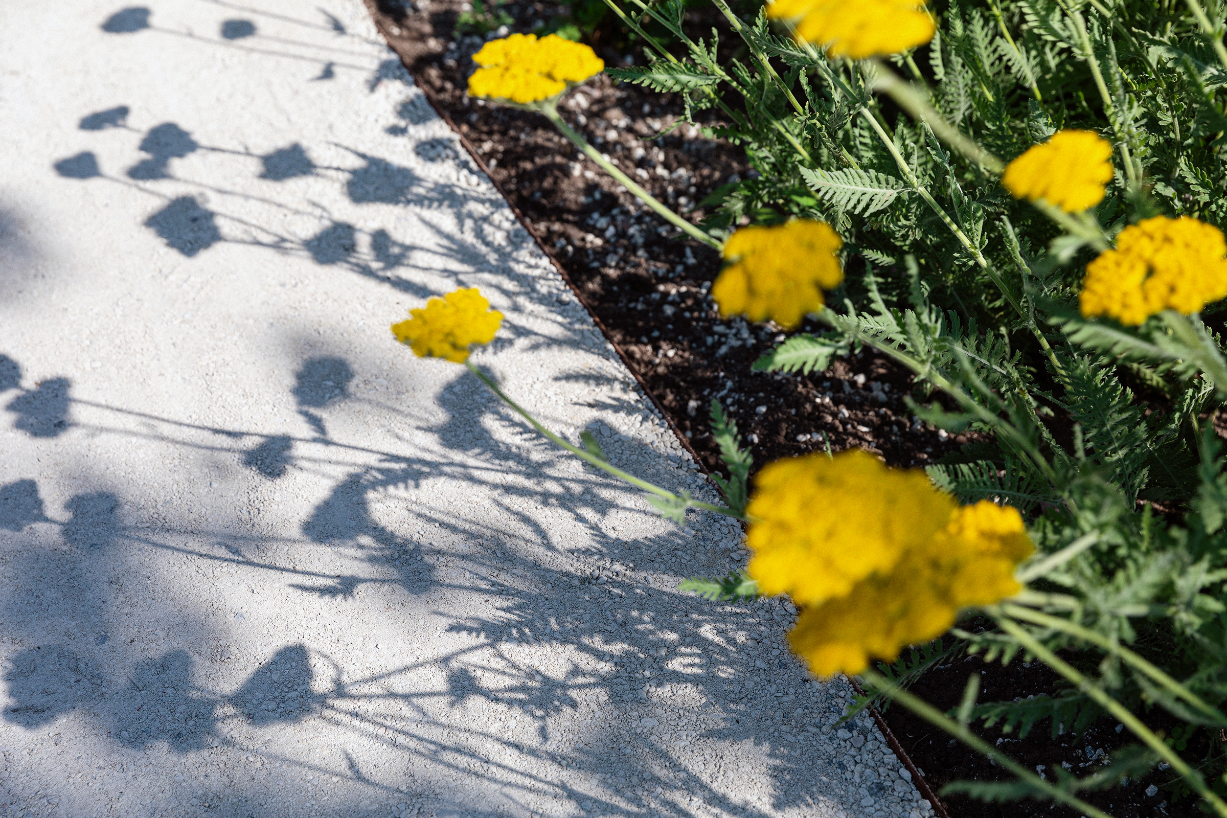 De paden zijn gemaakt van Komex bio, een waterdoorlatende halfverharding.
