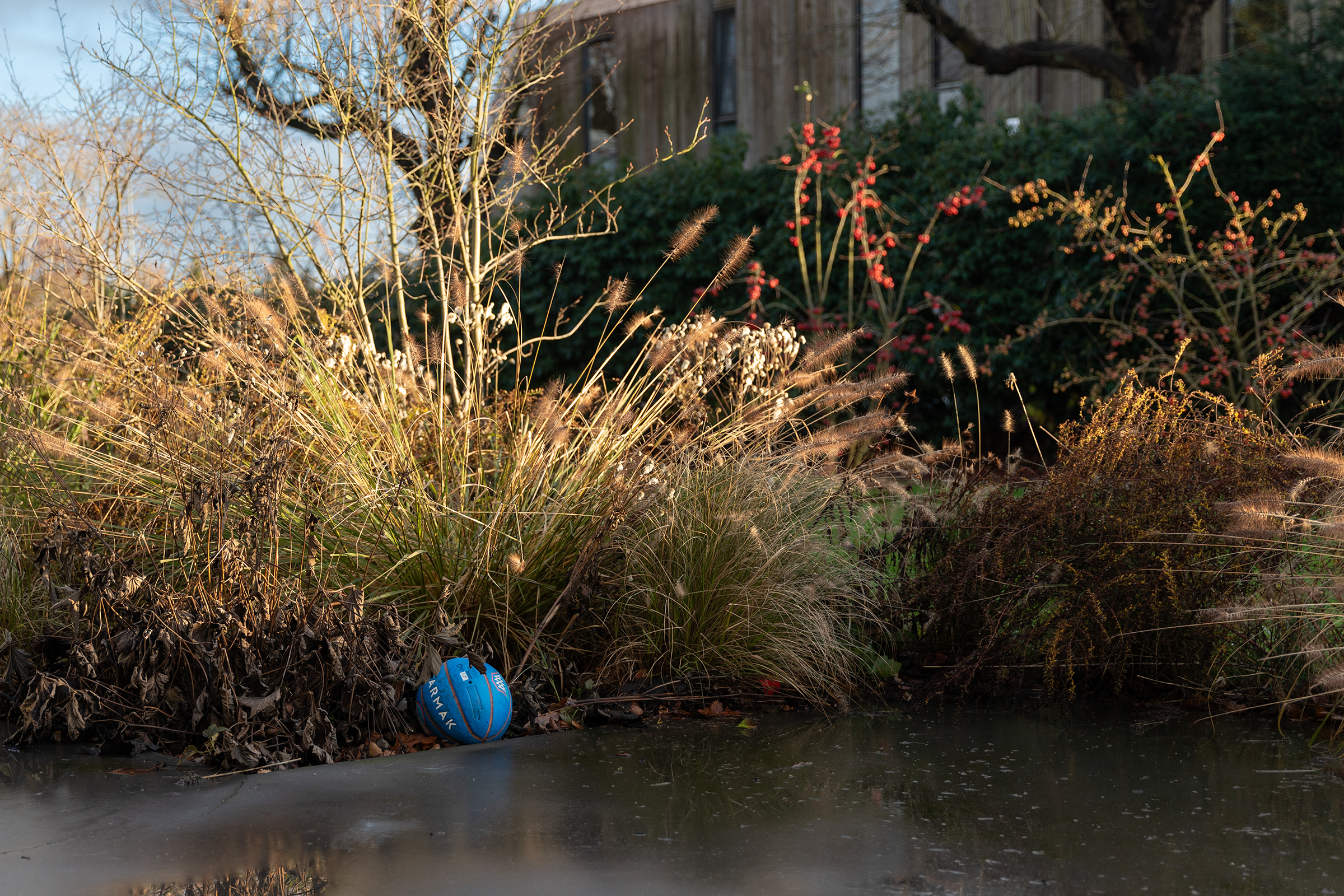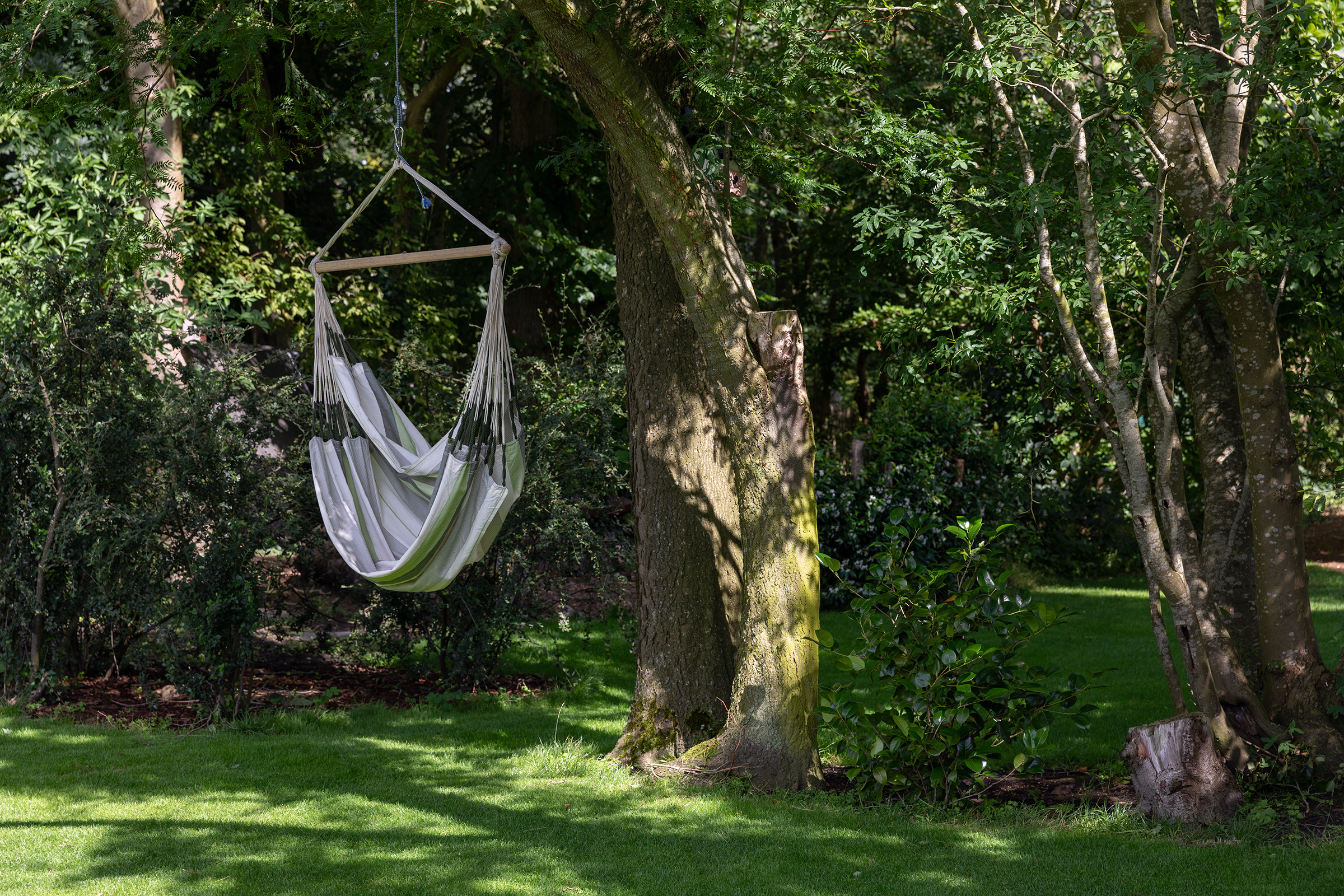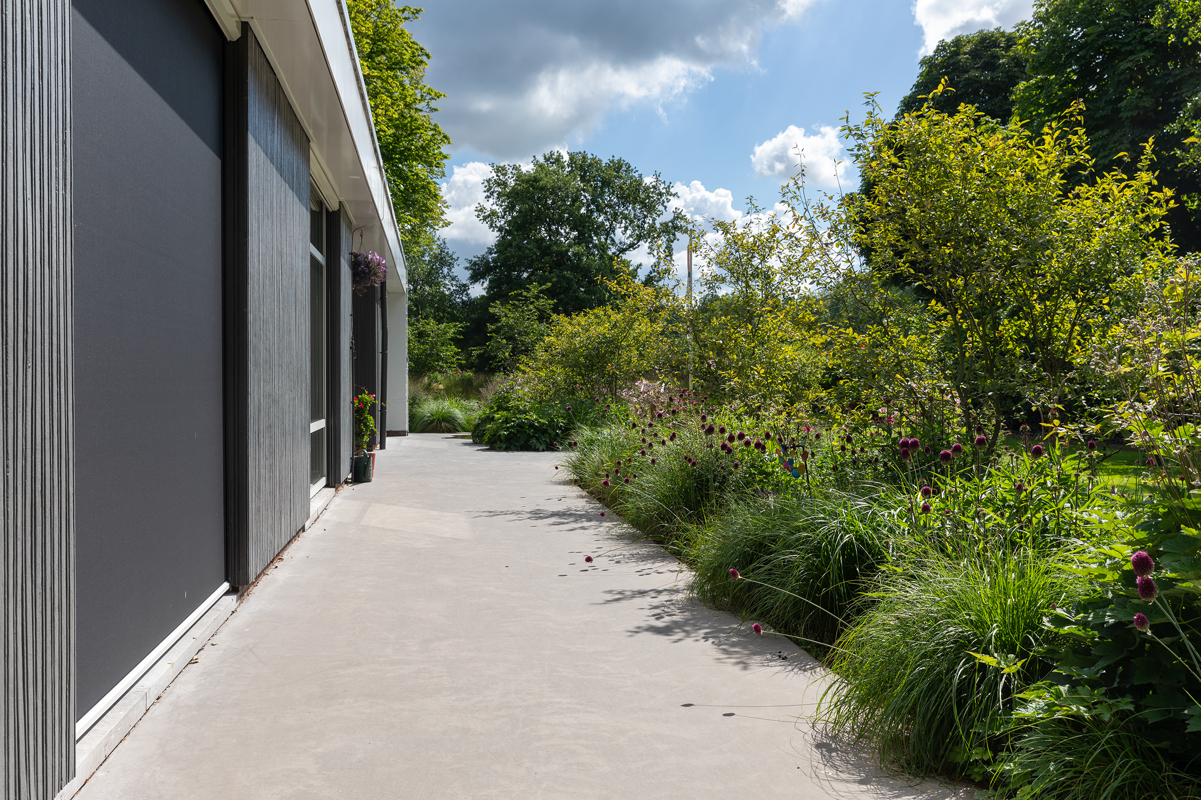 De tuin bestond bij aanvang uit drie ruimtes: een statige oprijlaan, een ruimtelijke tuin met organisch vormgegeven elementen en een bos. Een sterke en logische verdeling die we in stand hebben gehouden. In totaal bedraagt de kavel circa 5000 m2. Het bos en een weitje zijn in de loop der jaren bij de kavel betrokken.